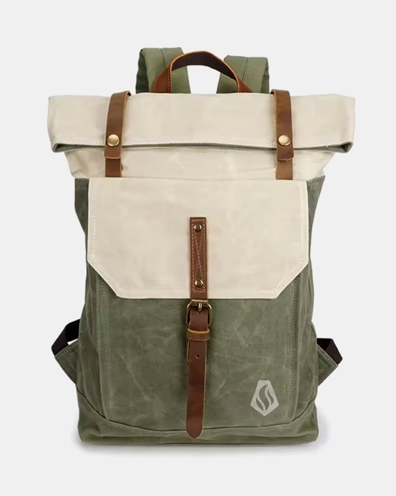 Our Alpine roll-top bag features a rugged and vintage build that can withstand the rigors of heavy daily use! It is crafted with premium recycled canvas and leather and has two large main open compartments with zippered storage areas for your important gear.